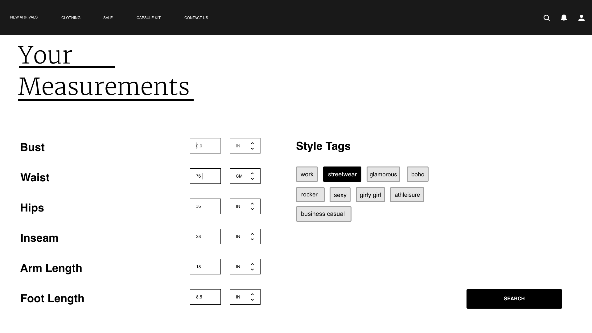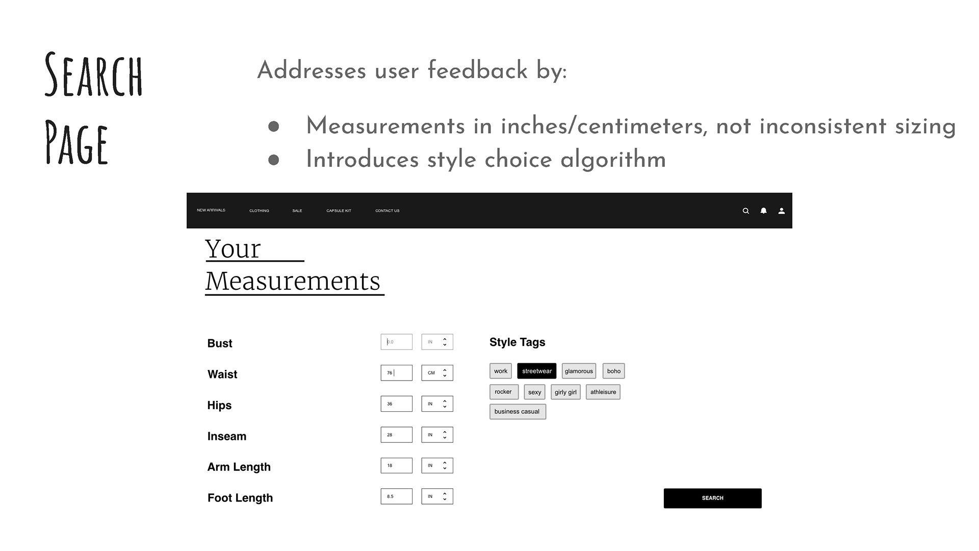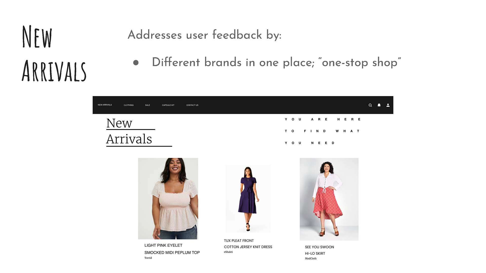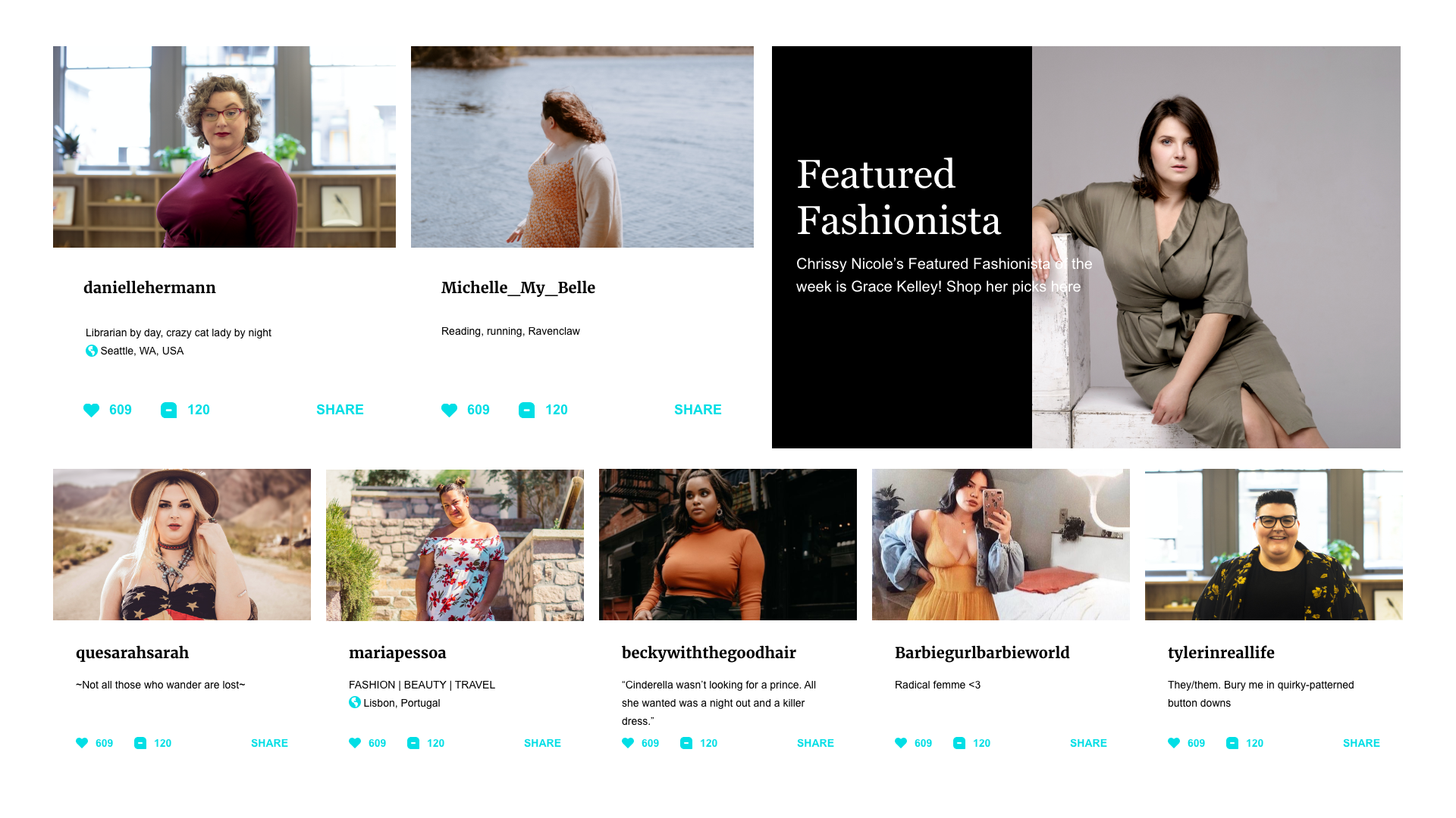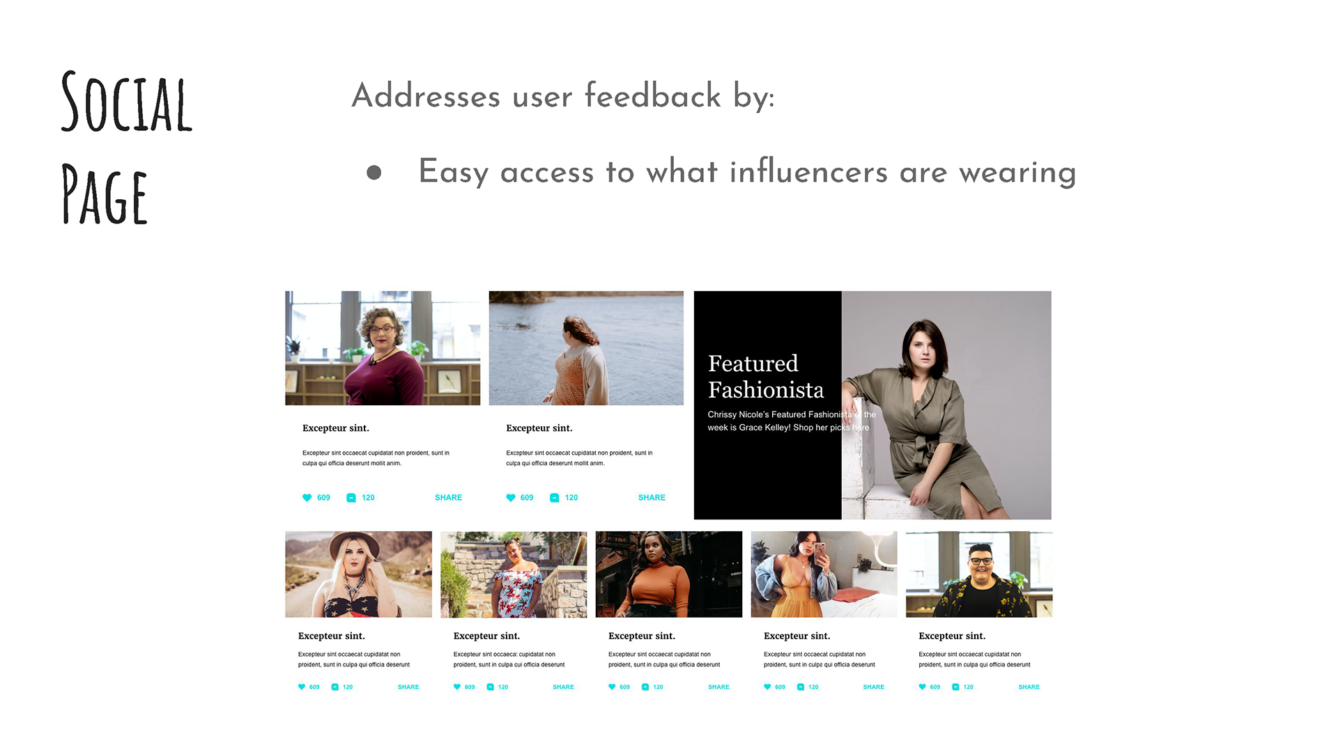A size-inclusive e-commerce and social media site. The result of a UX class in school.